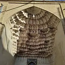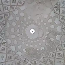 The lower section of the walls of the mausoleum are decorated with tile works that are hexagonal in shape.[1][2] On the top of the entrance door, on the east side, there are three lines of poem from Saadi Shirazi, which are now barely visible and have nearly faded off.[1][3]