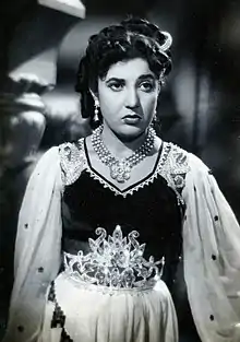 Nargis Rabadi (24 April 1929 – 6 March 2018), better known by her stage name Shammi, was an Indian actress who appeared in over two hundred Hindi films.[1] Shammi remained a sought-after actress with filmmakers when it came to goofy and comic roles,[2] especially in the period 1949–1969 and later from 1980–2002.[3][4] Her famous films as supporting actress included Dil Apna Aur Preet Parai, Half Ticket, Halaku, Samaj Ko Badal Dalo, Khuda Gawah, Coolie No. 1, Gopi Kishan and Hum Saath Saath Hain and films with Rajesh Khanna like The Train, Aanchal, Kudrat, Red Rose, Awara Baap and Swarg. She had been a leading actress playing main female lead or second female lead in Hindi films between 1949–1955 as well. Later, from 1986 till 1998, she appeared in many popular television serials such as Dekh Bhai Dekh, Zabaan Sambhal Ke, Shriman Shrimati, Kabhi Yeh Kabhi Woh and Filmi Chakkar. Shammi is the younger sister of fashion designer Mani Rabadi.