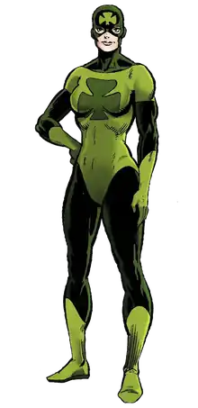 Jack Beresford of The Irish Post stated, "Though far from a fan favourite, Shamrock remains a character of huge potential. [...] Far from a popular presence in the world of Marvel comics, should the MCU succeed in resurrecting this decidedly one-dimensional Irish superhero stereotype, then it could rank among their greatest achievements."[9] Nicholas Conley of Grunge.com asserted, "Now, one aspect of Shamrock's origins that is potentially interesting is that her body has supposedly become a vessel for the many souls of innocent lives lost during war, a concept that could be fleshed out. However, the stereotypical nature of everything else about Shamrock is really hard to overlook, so it's not surprising that the character has sunken into deep obscurity."[10] Eric Nierstedt of ComicsVerse wrote, "Molly Fitzgerald is authentically Irish (born in Dunshaughlin), and has a unique power. The souls of war victims surround her body and manipulate probability in her favor. Unfortunately, she has the stereotypical Irish look of green eyes and long red hair and dresses in a green costume that forcibly tells people she’s Irish. Also, her abilities basically mean that her superpower is being lucky. At that point, readers are waiting to hear how she gets her powers from drinking a mixture of Guinness and Lucky Charms. So while Shamrock might be an Irish superhero, she’s sadly defined by that and that alone."[11] Matthew Wood of CBR.com said, "A red-haired woman who dresses like a shamrock-themed billiard ball, Molly Fitzgerald's usually seen as the most stereotypically Irish hero imaginable. Her power set doesn't disabuse anyone of this notion, since she has "the luck of the Irish" to help her win fights."[12]
