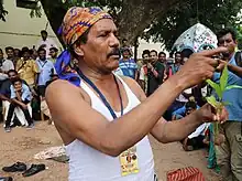 Cherpulassery performing a magic trick in Kollam, April 2019