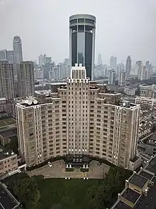 The former Cathay Mansion, now one of the two main buildings of Jinjiang Hotel, viewed from inside the hotel grounds.