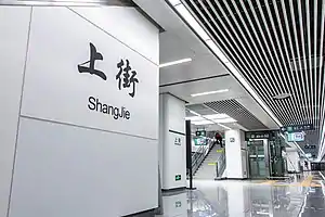 Shangjie Station (Chinese: 上街站; pinyin: Shàngjiē zhàn; Fuzhounese: [suoŋ˥˥ ɛ˥˥]) is a metro station of Line 2 of the Fuzhou Metro. It is located near the intersection of Guobin Avenue and Qiuyang West Road, Minhou County, Fuzhou, Fujian, China. It started operation on April 26, 2019.[1]