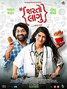 Sharato Lagu (transl. Terms and conditions apply) is a 2018 Indian Gujarati-language comedy drama film directed by Neeraj Joshi. It stars Malhar Thakar,[2] Deeksha Joshi,[3] Prashant Barot, Hemant Jha, Chhaya Vora and Alpana Buch. It was released on 25 October 2018.[4] It is produced by A. Dev Kumar and Yukit Vora of Superhit Entertainment and distributed by Rupam Entertainment. The film is a remake of the 2017 Marathi film Chi Va Chi Sau Ka.
