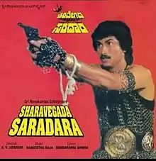 Sharavegada Saradara (transl. Chieftain with the speed of an arrow) is a 1989 Indian Kannada-language action film starring Kumar Bangarappa, Ashwini Bhave and Poonam Javeri. The film has musical score by Sangeetha Raja. The film is based on a novel by Sudarshan Desai. Director K. V. Jayaram, who also wrote the screenplay, shot the film in 70mm format making it the first 70mm film in Kannada.[4]