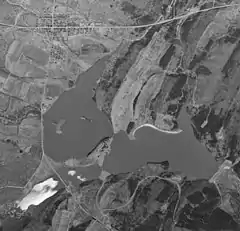 The lake was declared "full" on March 4, 1951, when water began pouring down the breast of the dam.[4]