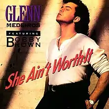 "She Ain't Worth It" is a song by recording artist Glenn Medeiros. It features a rap from R&B artist Bobby Brown. The song reached No. 1 for two weeks on the US Billboard Hot 100, becoming Medeiros' only No. 1 hit in the United States, and the second and last No. 1 hit where Brown has received credit as an artist, after "My Prerogative". The single also reached the top 20 on the UK Singles Chart, where Medeiros had previously reached number one with "Nothing's Gonna Change My Love for You", and peaked within the top 10 in Australia, Canada, Finland, and Ireland.