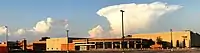 The school's main, commons, and gymnasium entrances as of July 2019.