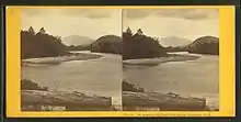 Looking up Androscoggin, from Lead-Mine Bridge, Shelburne, N.H.; stereographic card by John P. Soule