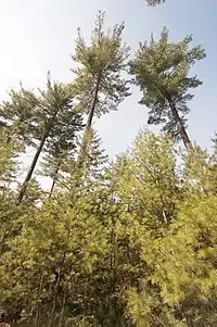 A partial overstory removal cutting in eastern white pine. Compare the amount of light reaching the seedlings to that in the establishment cut.