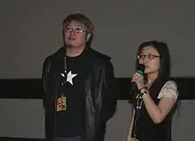 Director Sheng Zhimin (left) at a film festival in Vesoul