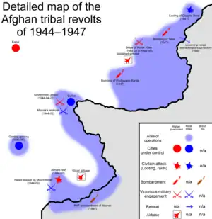 Detailed map of the Afghan tribal revolts of 1944–1947.