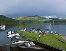 Facilities include a marina, improved swimming beach, campground and group campground on the North Shore; campgrounds and swimming beach on the South Shore; and various picnic and overlook areas.[2] The dam across Spring Creek is very small and accessible only on foot. Lake water levels remain constant since the lake is not used for flood control or irrigation.