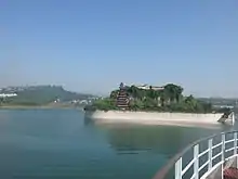 With the construction of the Three Gorges Dam the base of the red pavilion would have been beneath the reservoir's water level in earlier designs.