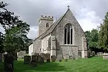 The earliest parts of the Church of England parish church of the Holy Rood are the Norman nave, south aisle and arcade, all of which were built in about 1150.[9] The present Early English Gothic chancel was built in about 1250.[10] The bell tower was added in the 15th century.[10] The present side windows of the nave and aisle are also late Medieval Perpendicular Gothic additions.[10] The Gothic Revival architect C.C. Rolfe restored the building in 1884–88, adding the present rood screen.[10] The church is a Grade II* listed building.[11] Holy Rood church tower has three bells, all cast in 1854 by W. & J. Taylor[12] of Loughborough, who at the time also had a bell-foundry in Oxford.[13] Currently for technical reasons they are unringable.[12] Holy Rood also has a Sanctus bell that Henry III Bagley cast in 1730.[12] Bagley was from Chacombe, Northamptonshire but also had a foundry at Witney.[13] Holy Rood parish is now part of the Benefice of Shill Valley and Broadshire.[14]
