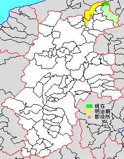 * yellow - areas formerly within the district borders during the early Meiji period