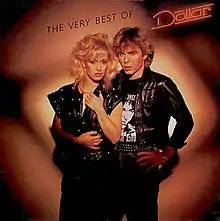 Dollar left Carrere Records in early 1980 and signed to WEA Records where they went on to find even greater success. Eager to cash in on this, their original label re-released Shooting Stars as The Very Best of Dollar with a new cover and added track - their fourth and final hit with the label, "I Wanna Hold Your Hand". Another single, "Ring Ring" was released to coincide with the album, which clashed with Dollar's latest official single, "Give Me Back My Heart".[7][8] The album actually improved on its original chart performance, reaching no. 31, which was surprising considering that it featured none of Dollar's recent hits and received no promotion from the duo themselves.[9] The album was certified Silver by the BPI later in the year.[10]