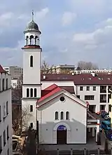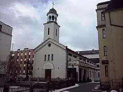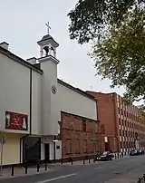 The Shrine of St. Faustina (Polish: Sanktuarium św. Faustyny) is a Roman Catholic church located in Warsaw; it is the center of the Divine Mercy and St. Faustina Parish. From 1863 to 1944 the building served as internal chapel within the Sisters of Our Lady of Mercy monastery compound; destroyed during the Warsaw Uprising, it remained a ruin until the early 21st century, when it was brought to the current shape. The church and its immediate surroundings gained nationwide iconic status in the 1980s; the premises became the hub of independent art, strongly flavored with opposition to the official political regime. Currently the church is known mostly as related to Saint Faustina, who entered the neighboring monastery in 1925.