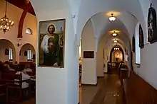 The chapel kept serving the Sisters of Our Lady of Mercy and their protégés, "fallen and neglected girls",[13] boarded in a dedicated ward;[14] outsiders were admitted only once in a year, on Easter.[15] The best-known Polish mystic later to be known as St. Faustina entered the convent in 1925 and lived there on the on-and-off basis until 1933.[16] There were no major architectural changes registered for 63 years, though it is likely that during this period the interior décor was being systematically adjusted; its main feature was an old copy of Black Madonna of Częstochowa painting.[17] The building underwent major refurbishment in 1936-1938.[18] The main nave was extended by few meters, an aisle was added along the Western wall, the chancel was slightly broadened and a bell-tower was built next to the South-Western corner of the temple; the chapel turned into a small church and as such is referred to in some sources.[19]