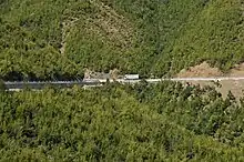 North of the pass road, the majority of the park is mostly undeveloped mountain land with forests, in which pine trees, and oak dominate. The black pines are up to 20 meters high and 60 years old—one of the main wood sources in Albania.[2][5] The forests provide opportunities for retreat for brown bears, wolves, foxes, and various birds,[2] actually being endangered from illegal deforestation.[5] The highest points on which it rises steeply from the Pass to the north, are the Maja e Liqenit (1724 meters) and the off peak Maja i Rjepat e Qetkolës ( 1686 meters). Maja e Liqenit should not be confused with the peak with the same name in Sharr region of Kosovo. In the southeast, the park is adjacent to the Dajti National Park[6] and in the southwest to the Kraste-Verjon Protected Landscape.