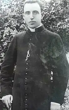Kurti studied in Graz and Feldkirch as well as in Innsbruck and at Rome; the Jesuits oversaw his education at one stage. He further studied at Propaganda Fide in Rome since 10 January 1919.[2] Kurti was ordained as a priest in Rome on 13 May 1924. He then acted as a parish priest in Skopje and Novoselo near Gjakova from 1921 until 1929 but the murder of fellow Albanian priest Shtjefën Gjeçovi prompted Kurti to flee for Romania.[1] It was there that he wrote a memorandum to the League of Nations regarding the persecution of Catholic Albanian citizens in Kosovo which was dated on 5 May 1930. Father Kurti would soon move on to serve as a priest in Shna Prendja (now Krujë) as well as in Gurës and Tirana.