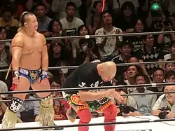 Shuji Kondo (近藤修司, Kondō Shūji, born January 21, 1978) is a Japanese professional wrestler. Prior to becoming a pro wrestler, he played rugby. After starting his career in Toryumon, Kondo eventually joined All Japan Pro Wrestling (AJPW), where he became one of the promotion's top junior heavyweights, winning the World Junior Heavyweight Championship three times and the All Asia Tag Team Championship once. Upon leaving AJPW in 2013, Kondo joined Wrestle-1, where he became half of the inaugural Wrestle-1 Tag Team Champions. Kondo also worked as the vice president, booker and trainer for Wrestle-1 until its closure in 2020.[1][2] He now works as a freelancer in promotions like Pro Wrestling Basara and DragonGate.