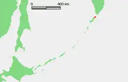 Shumshu (Russian: Шумшу, romanized: Shumshu; Japanese: 占守島, romanized: Shumushu-tō; Ainu: スㇺス (reconstruction), lit.'good island') is the easternmost and second-northernmost island of the Kuril Islands chain, which divides the Sea of Okhotsk from the northwest Pacific Ocean. The name of the island is derived from the Ainu language, meaning "good island". It is separated from Paramushir by the very narrow Second Kuril Strait in the northeast 2.5 kilometres (1.6 mi), and its northern tip is 11 kilometres (6.8 mi), from Cape Lopatka at the southern tip of the Kamchatka Peninsula. The island has a seasonal population of around 100 inhabitants.