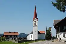 The Sibratsgfäll parish church is dedicated to the Archangel Michael and belongs to the deanery of Vorderwald-Kleinwalsertal. It was first mentioned, as a chapel, in a document from 1732. In 1805, a new church building was built, and later extended in 1845.