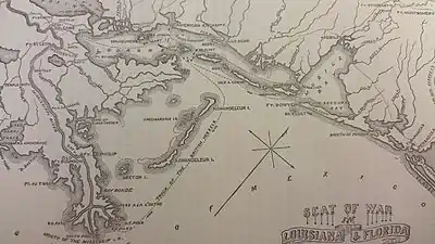 - ↑ Roosevelt (1900), p.237 ' At the same time [as the British Army's withdrawal from New Orleans], a squadron of vessels, which had been unsuccessfully bombarding Fort Saint Philip for a week or two, and had been finally driven off when the fort got [the ammunition for] a mortar large enough to reach them with, also returned; and the whole fleet [thereafter] set sail for Mobile.'