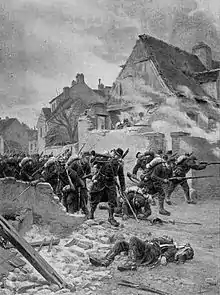 On August 27, the garrison learns that the railway from Mézières to Thionville is cut. It receives the support of part of a company from the 6th Infantry Regiment, which came from Mézières.[12] On August 30, Near Chauvency-le-Château, a skirmish pits the 6th Regiment's vanguard against a detachment of fighters of the Bavarian Army: French infantry, threatened with encirclement, is saved by the arrival of reinforcements from Montmédy via rail. The fight left 7 or 8 killed and 15 wounded on the French side, 2 killed, and 4 wounded on the Bavarian side.[15] According to Peter Spohr, the German detachment was the XII (1st Royal Saxon) Corps' vanguard, including a company of the 13th Regiment and a squadron of the 2nd Cavalry Regiment; the Saxons destroy the installations of the Chauvency station (telegraph, water tank, etc.); they lost one killed, and one wounded and took 11 French prisoners including a captain.[16]