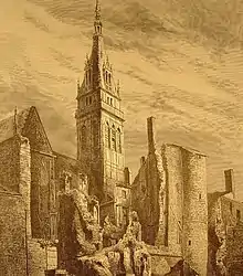 The Mézières cathedral after the bombing, engraving from L'Illustration européenne, 1870