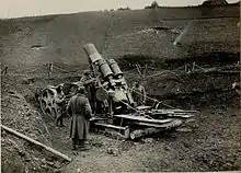 Rainy weather hampered German photographic reconnaissance aircraft but the 1st Guard Reserve and 38th divisions were to make the main attack between Daussoulx and Gelbressée, as the 3rd Guard Division waited in reserve. The artillery was directed to commence firing on fort Cognelée. On 22 August the Belgian defenders made two counter-attacks and the 3rd Guard Division was drawn into fighting near Marchovelette, which disorganised the attack and led to a delay until the next day.[13] The bombardment continued, with the artillery commanders being certain that the effect had been devastating and the infantry commanders, engineers and air crews pointing out that return fire from the Belgian forts and intermediate positions had not diminished.[17]