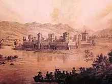 Lithography of the castle of Smederevo by Adolph Friedrich Kunike