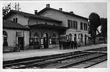 Opened in 1840 by the Compagnie du chemin de fer de Strasbourg à Bâle, the railway station is a stop on the SNCF national network. The station is served by TER Grand Est trains between Mulhouse and Basel SBB.[1]