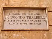 "Sigismond Thalberg lived in this house and died there on April 27, 1871, paid for by immortal triumphs."