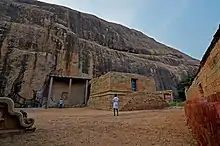 Sikharagiriswara Temple is a Hindu temple situated in the village of Kudumiyanmalai at a distance of 20 kilometres from Pudukkottai. The temple complex includes a 1000-pillared hall and has many inscriptions by the Pallava king Mahendravarman including a treatise on music. Similar architecture of halls (Mandapas) simulating a chariot drawn by elephant or horses is found in Sarangapani temple at Kumbakonam, Mela Kadambur Amirthakadeswarar Temple, Nageswaraswamy Temple, Kumbakonam, Vriddhagiriswarar Temple, Vriddhachalam and Thyagaraja Temple, Tiruvarur.[1][2]