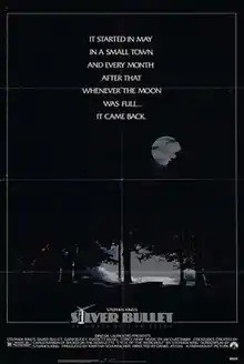 On Rotten Tomatoes, Silver Bullet holds an approval rating of 41% based on 22 reviews, with an average rating of 5.20/10.[9] Roger Ebert gave the film three stars out of four.[10] Ebert admitted that he thought that the film was a parody of the novella and of King's work in general, but said that he enjoyed the film.[10] Conversely, Vincent Canby of The New York Times dismissed the film as "very low-grade Stephen King fiction" and thought the werewolf "looks less like a wolf than Smokey Bear with a terrible hangover."[11] Variety wrote, "'Silver Bullet' is a Stephen King filmette from his scriptette from his novelette which may sell some tickettes but not without regrettes ... the kids have a silver bullet, the only known power that will stop a werewolf. Unfortunately, there's no known power that will stop films like this."[12] Rick Kogan of the Chicago Tribune gave the film one star out of four and called it "a limp retelling of the werewolf legend that is about as frightening as a rubbery Richard Nixon mask."[13] Michael Wilmington of the Los Angeles Times wrote, "The human drama gives 'Silver Bullet' an extra warmth—and Marty's handicap and ingenuity make him a more attractive hero. But, with the exception of one startling dream sequence (a church congregation in mass vulpine metamorphosis), 'Silver Bullet' never really surprises you."[14] Paul Attanasio of The Washington Post remarked that the plot "is about as suspenseful as looking at your watch to see which minute will pop up next," but Gary Busey's lively performance "almost makes the movie bearable."[15]