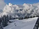 The height of the area extends from 700 m to 2,430 m. The ski area offers 141 km of certified pistes over 50% of which are at over 2,000 meters.[4] These 141 km consist of 27 easy pistes (60 km), 24 pistes of medium difficulty (45 km), 8 difficult pistes (8 km) and 28 km free ride routes.[5][6] Skiers can improve their racing skills on two speed measurement tracks. Additionally, there are 8 km of winter hiking trails.