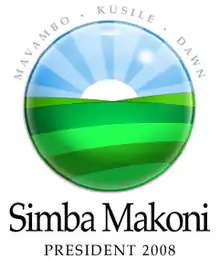 Running under the slogan "Let's Get Zimbabwe Working Again", Makoni's theme was Dawn, and this name was given to the organisation supporting his campaign, Mavambo/Kusile/Dawn. He adopted the yellow as his campaign colour. The colour represents gold and the wealth of Zimbabwe, reinforcing his focus on solutions to the current economic crisis. The colour also represents the rising sun and the dawn of a new Zimbabwe, anchored in the hopes and aspirations of Zimbabweans for a brighter future. His campaign logo appeared very similar to that of United States presidential candidate Barack Obama's.