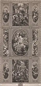 In 1707 he completed a set of seven small plates of the cartoons of Raphael, with a title-page composed of a sectional view of the apartment at Hampton Court Palace in which they were then placed, and a circular portrait of Queen Anne. This series, not having been published before as a whole, met with great success. But his most important work was a large engraving on three plates, finished in 1730, of ‘The Apotheosis of James I,’ from the painting by Peter Paul Rubens on the ceiling of the banquet house at Whitehall. None of his plates, however, give any adequate idea of the style of the masters from whom they are copied, and, as George Vertue remarks, ‘at best are neat memorandums.’