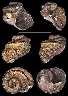 - ↑ Geiger D.L. (2012) Monograph of the little slit shells. Volume 1. Introduction, Scissurellidae. pp. 1-728. Volume 2. Anatomidae, Larocheidae, Depressizonidae, Sutilizonidae, Temnocinclidae. pp. 729-1291. Santa Barbara Museum of Natural History Monographs Number 7. (30 October 2012)