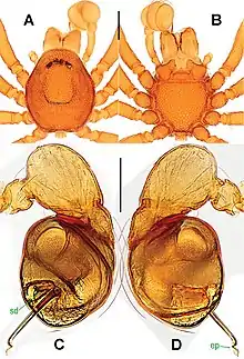 - ↑ Shear, W. A. (1978). "Taxonomic notes on the armored spiders of the families Tetrablemmidae and Pacullidae". American Museum Novitates (2650): 1–46.