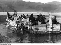 Ferry boats on the Yarlung Tsangpo River in Tibet are decorated with a wooden horse's head symbolizing the horse Shyam Karna that carried Singha Sartha to safety. A stupa dedicated to Singha Sartha once stood on the Barkhor in Lhasa.[7] The traditional trade fair held in Jampaling, Tibet is associated with Singha Sartha, who is known as Norbu Sangya in Tibetan. There was a shrine dedicated to him near the great stupa of Jampaling which was destroyed during the Cultural Revolution.[8]