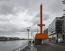 As of the early 21st century, the previously functional maritime buildings and features of Sir John Rogerson's Quay have been redeveloped for heritage tourism, and newer office buildings built on the quay.[14][15] This has included redevelopment of the quay's 'campshire' warehouses (associated with the historical use of the quay as a military 'camp'),[16][17][12] and the renovation of a mid-19th century diving bell made by Grendons of Drogheda.[18][19][20] The diving bell has been a feature of the quays since the 1870s, and was used to build and maintain many of the walls of Dublin's quays.[21]