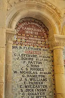 Little is known of Richard Fletcher's early life, even his exact date of birth is obscure. It is known however that the year was 1768 and his father was a clergyman.[1] On 27 November 1796, at Plymouth, he married Elizabeth Mudge the daughter of a doctor. Fletcher and his wife went on to have five children together; two sons and three daughters.[1] Though Fletcher was buried near to where he was killed at San Sebastián, a monument to his memory, purchased by the Royal Engineers, stands at the western side of the north aisle in Westminster Abbey, London.[2][3]