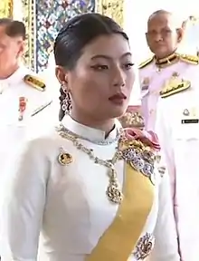Princess Sirivannavari Nariratana Rajakanya (Thai: สิริวัณณวรี นารีรัตนราชกัญญา;[fn 1] Thai pronunciation: [sì.rì.wān.wá(ʔ).riː.]; RTGS: Siriwanwari Narirat Ratchakanya; born 8 January 1987) is a Princess of the Kingdom of Thailand and is the only daughter of King Vajiralongkorn by his former consort Sujarinee Vivacharawongse (commonly known as Yuvadhida Polpraserth). She is also the only one of their common children in the line of succession and to bear royal titles. She has produced works as a fashion designer, and competed in sports as an equestrian and badminton player.[2]