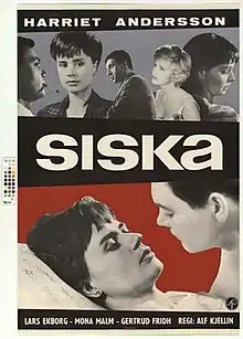 Siska is a 1962 Swedish drama film directed by Alf Kjellin and starring Harriet Andersson, Lars Ekborg and Mona Malm.[1] It was shot at the Råsunda Studios in Stockholm. The film's sets were designed by the art director Bibi Lindström.