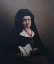 The Sisters of Adoration, in full the Sisters of Reparative Adoration (French: Sœurs de l'Adoration réparatrice; Abbreviation: A.R.) are a Catholic enclosed religious order of women that follows the religious rule of the Discalced Carmelite Order, established in 1848 by Théodelinde Bourcin-Dubouché. They are dedicated to perpetual adoration of the Blessed Sacrament and to reparation to God for the sins of the world. To this end, they serve to help deepen the faith of laywomen though conducting spiritual retreats in their monasteries.