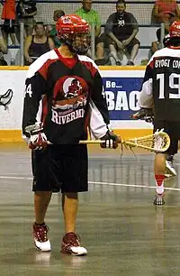 In 2014, Six Nations would finish the season in third place with 11 wins and 5 losses. In the league quarter-final they would defeat the Sarnia Beavers 2-games-to-none and in the semi-final they would upset the defending national champions with a 3-games-to-none sweep. In the league final, the Rivermen would play the Ennismore James Gang, the first place team in the league, and beat them 3-games-to-1 to clinch the OLA championship.[2] With a berth into the Presidents Cup, the Rivermen would travel to Coquitlam, British Columbia to compete against the best of the country. They opened the tournament with a 14–12 loss to the Onondaga Redhawks and a 10–8 loss to the St. Albert Miners. The Rivermen came together in the next game and beat the Kahnawake Mohawks 9–8, then the Nanaimo Timbermen 8–5, Akwesasne Outlawz 14–9, and the Tri-City Bandits 9–7 to finish the round robin 4–2–0 and in fourth place. In the semi-final, the Rivermen would beat Kahnawake 8–4 to get to the finals. Despite leading most of the game, in the final the Onondaga Redhawks would come from behind to win the national title with a 9–7 win.[3][4][5] Warren Hill and Wayne VanEvery would be named to the all-star teams.
