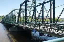The Sixth Street Bridge is a four-span, wrought iron bridge that crosses the Grand River in Grand Rapids, Michigan. It is a Michigan State Historic Site and is listed on the National Register of Historic Places. Built in 1886, it is the longest and oldest metal truss bridge in Michigan.