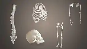 Skeletonization is the state of a dead organism after undergoing decomposition.[1] Skeletonization refers to the final stage of decomposition, during which the last vestiges of the soft tissues of a corpse or carcass have decayed or dried to the point that the skeleton is exposed. By the end of the skeletonization process, all soft tissue will have been eliminated, leaving only disarticulated bones.[2]